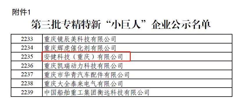 近日,太阳成集团tyc122cc入口科技子公司太阳成集团tyc122cc入口(重庆)有限公司入选了工信部第三批国家级专精特新“小巨人”企业名单。此工程由国家财政部、工信部联合发起,旨在支持创新型企业成长为创新重要发源地、进一步提升企业创新能力和专业化水平。
